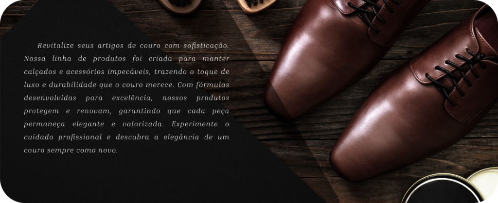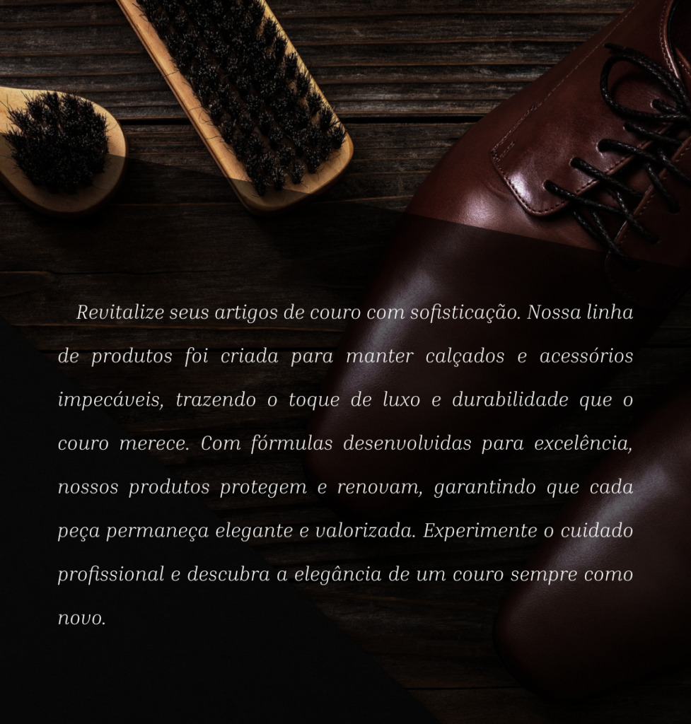 Preserva e renova a elegância natural de cada peça em couro, proporcionando um acabamento impecável e duradouro que exalta a sofisticação dos seus artigos.